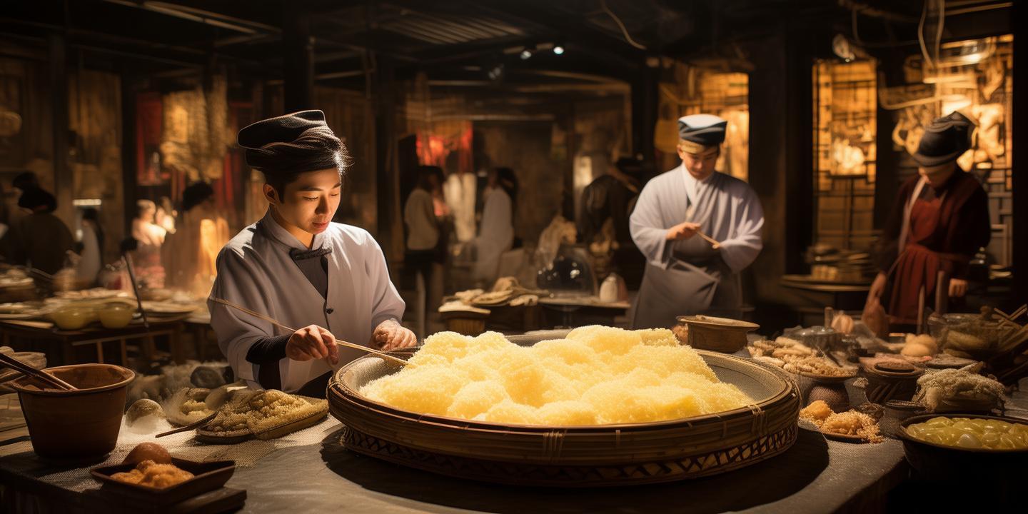 太和区豆腐宴以当地传统的豆腐制作工艺为基础,将豆腐制作过程巧妙地融入到剧场表演中。食客们踏入剧场,仿佛穿越到了民国时期,亲身感受那个时代豆腐匠人的匠心独运。在剧场的舞台上,豆腐匠人们身着传统服饰,现场展示豆腐制作的各个环节,包括磨豆、煮浆、点浆、压制等。